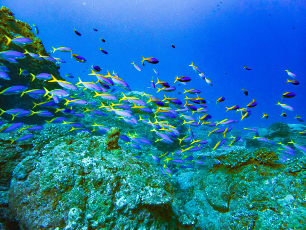 ダイビング中に水中で撮影した写真「小笠原で出会ったウメイロモドキの群れ」