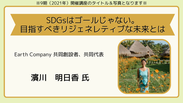 動物福祉や人権問題については、あまり触れてこなかった分野だったので新たな学びの機会になりました。その中でも当時一番印象的だった講座は、第8回のEarth Company 共同創設者、共同代表の濱川明日香さんの「SDGsはゴールじゃない。目指すべきリジェネレティブな未来とは」の回です。