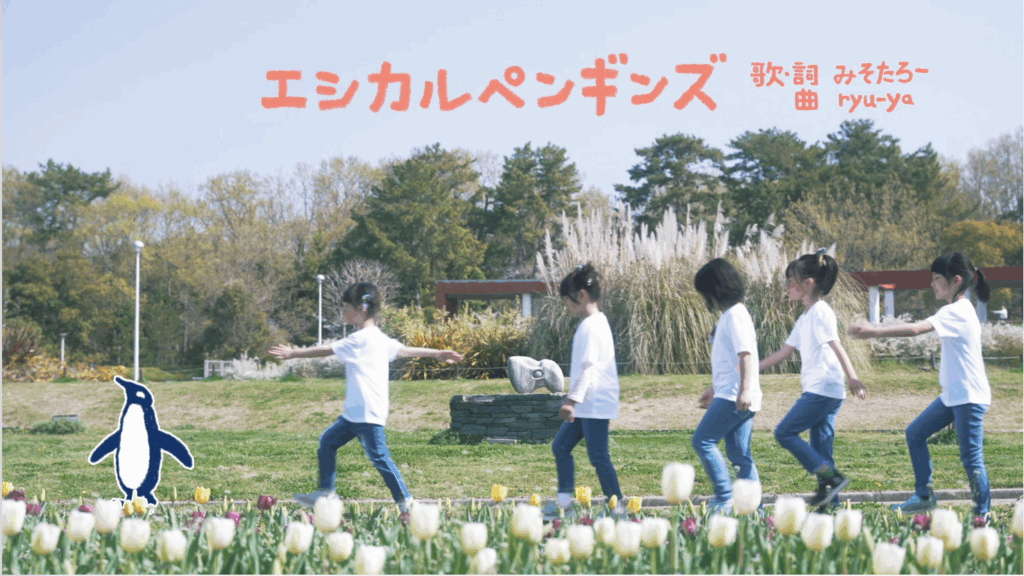 SDGsビジネスコンテストで優勝した際にミュージシャンの運営委員長に作ってもらったオリジナル曲「エシカルペンギンズ」スタッフや家族みんなで踊っています!