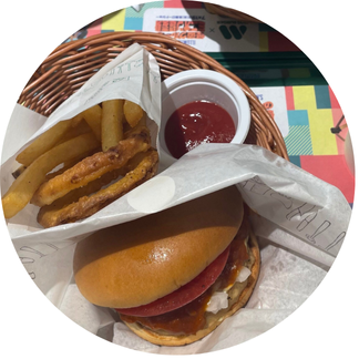 モスバーガーのソイパティシリーズ:お肉のパティの代替として大豆を原料としたソイミートを使用したハンバーガー。見た目も味も食感もお肉そのもの! 通常のハンバーガーと同じ値段で食べることができるので、学校の友達と放課後たまに食べに行きます。高校生等身大のおすすめエシカルです。