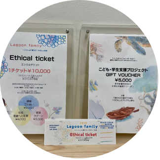 Lagoonの1万円の「エシカルチケット」は、【3千円分:ゴミ拾いへの貢献、4千円分:若者たちへの支援、3千円分:運営経費】というように、支援の形を明確に分けています。誰でも購入でき、購入された分だけ、ゴミ拾いを行うボランティアや、若者が支援を受けられる仕組みです。また、5千円分の「こども・学生支援プロジェクトのチケット(毎月4枚発行)」との併用も可能で、各プログラムの定価から最大9千円分の割引ができます。