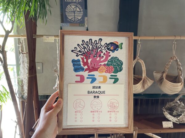 また、サンゴの死滅は陸からの影響(赤土汚染、生活排水流入など)も大きいと言われています。そこでサンゴに優しい事業を増やしたいという思いで作られたのが八重山地域のローカル認証「コラコラ」です。