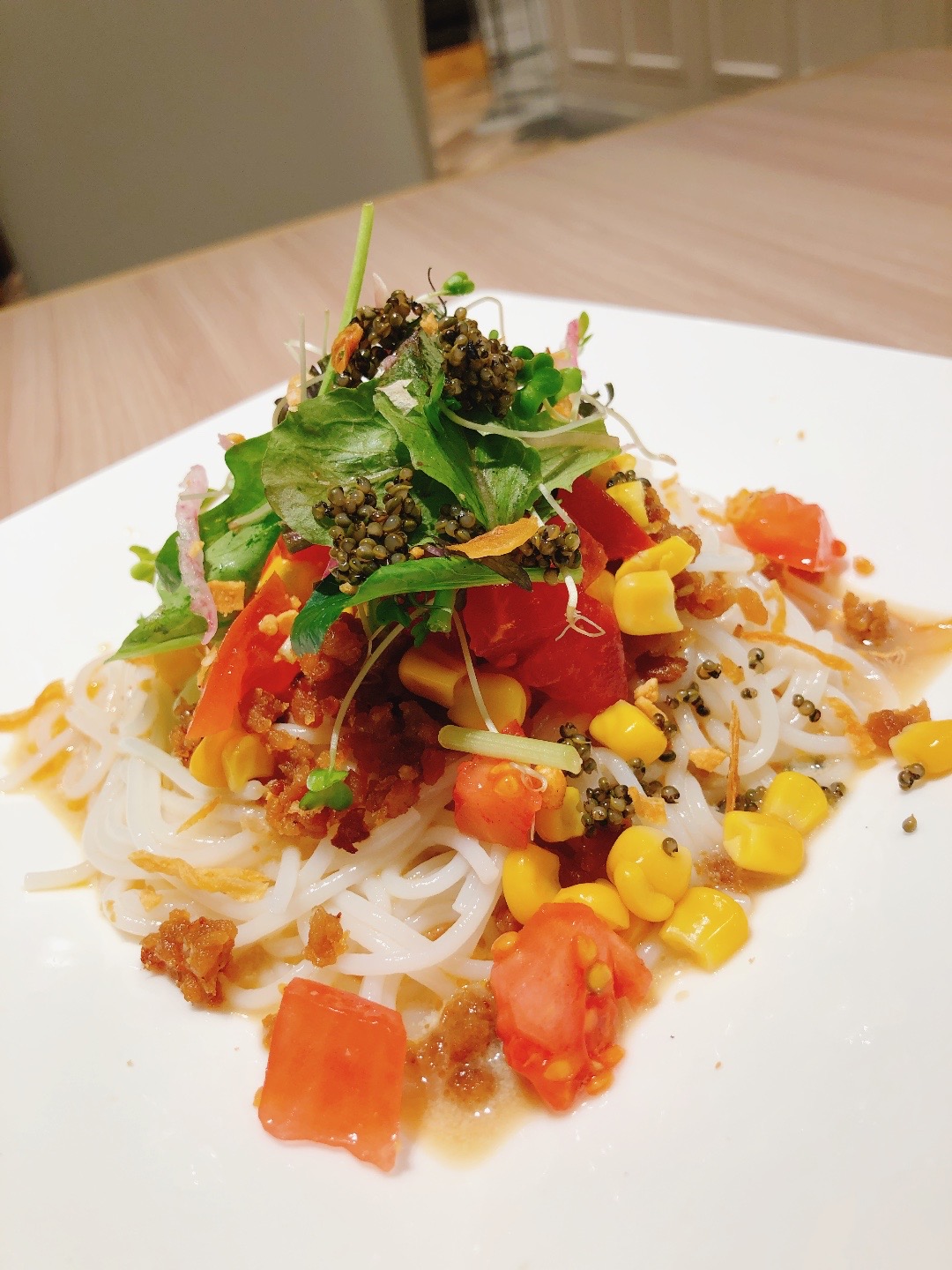 単品メニューの他コース料理もあり、デザートも含めすべて驚きのヴィーガン対応。写真は冷やし担々麺とチョコレートタルトなのですが、ヴィーガンと言われてもまったくわかりません。色々食べましたがどれも文句なしに美味しく、初めてヴィーガンに挑戦する方には特におすすめです!